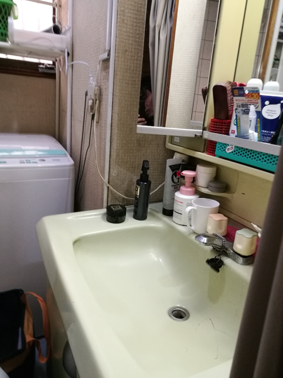 リフォーム前に使っていた洗面台です。よく見ると、ボウルにひびが入っています。幸い水が漏れるほどではありませんでしたが、ひび割れを放っておくと漏水を起こし、家を腐らせる原因になることも。こうなってしまったら、大幅なリフォームが必要になります。そうならないためにも、ひび割れを起こしたときは応急処置を施したり、器具を取り換えたりする初期対応が大切です。