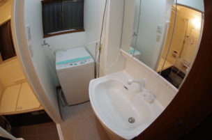 三面鏡を取り付けて、リフォームは完了です。以前の洗面台より収納が増えたので、外に置いていた小物もしまえるようになりました。このリフォームでは、壁紙(クロス)は張替えましたが、クッションフロアは新しくせず、そのまま使用することでコストダウンを図っています。